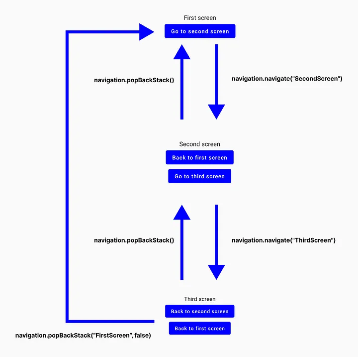 navigation.popBackStack(Routes.FIRST_SCREEN, false)